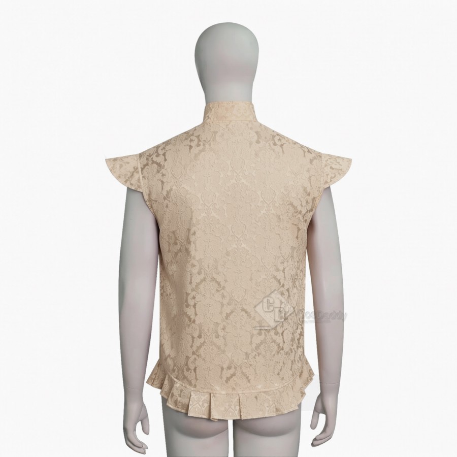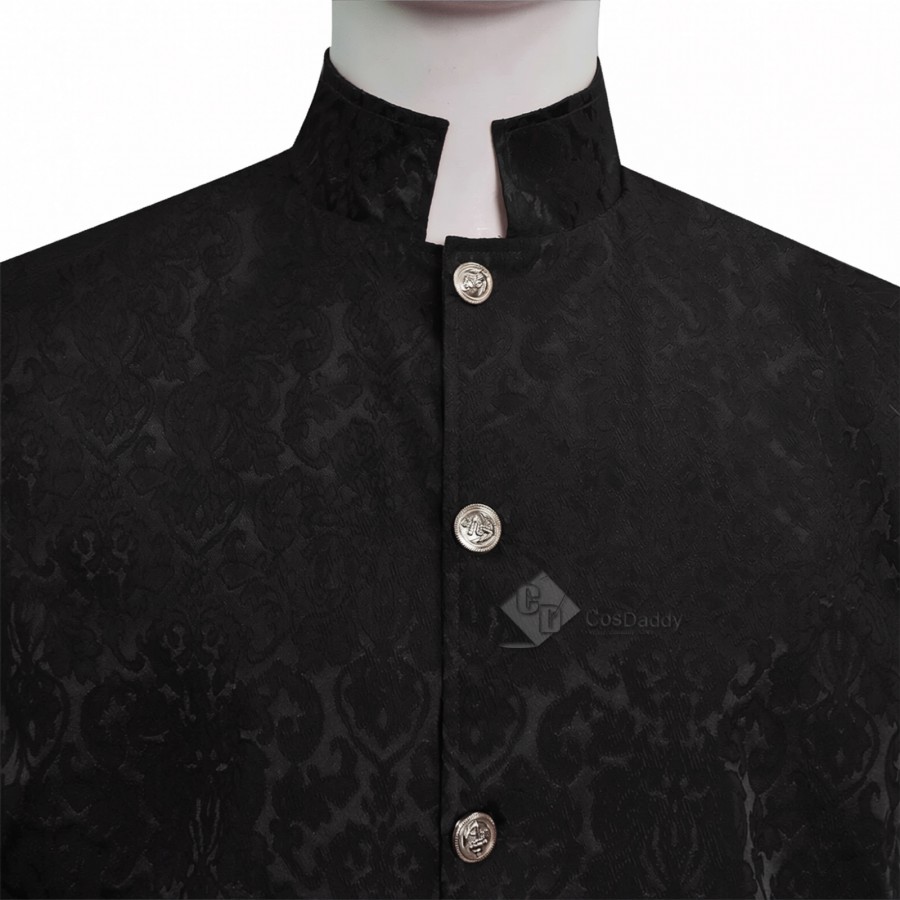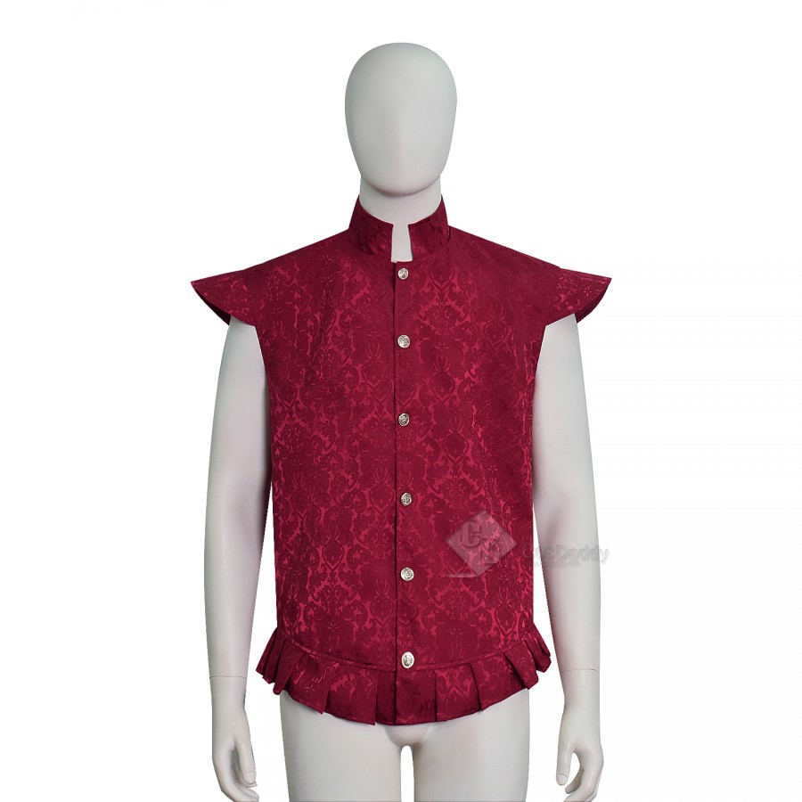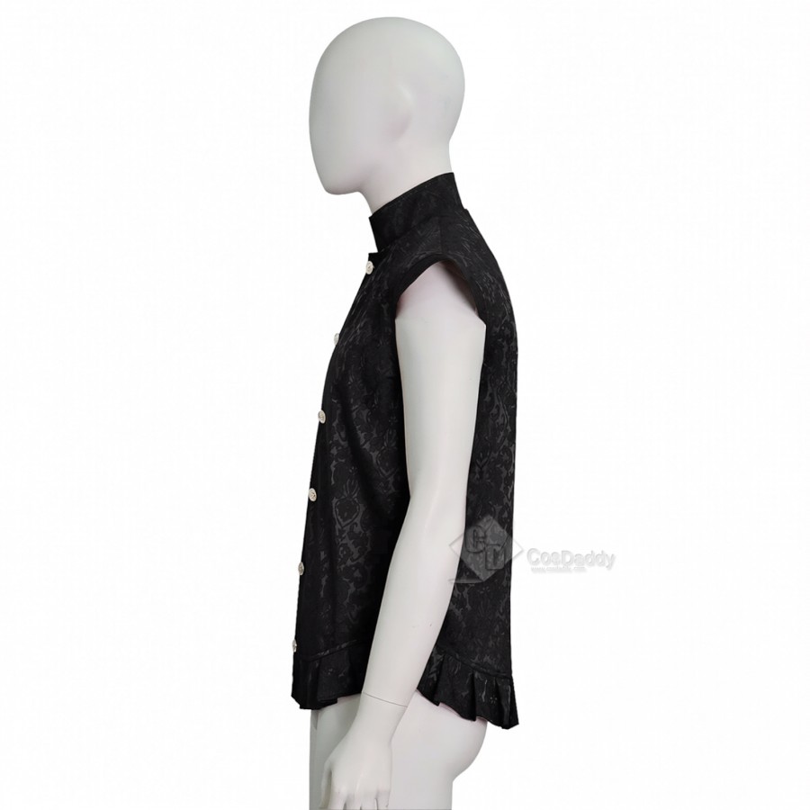 Cosdaddy Doctor Raised Jacquard Ruffle Vest Men Vintage Embossed Floral Brocade Waistcoat